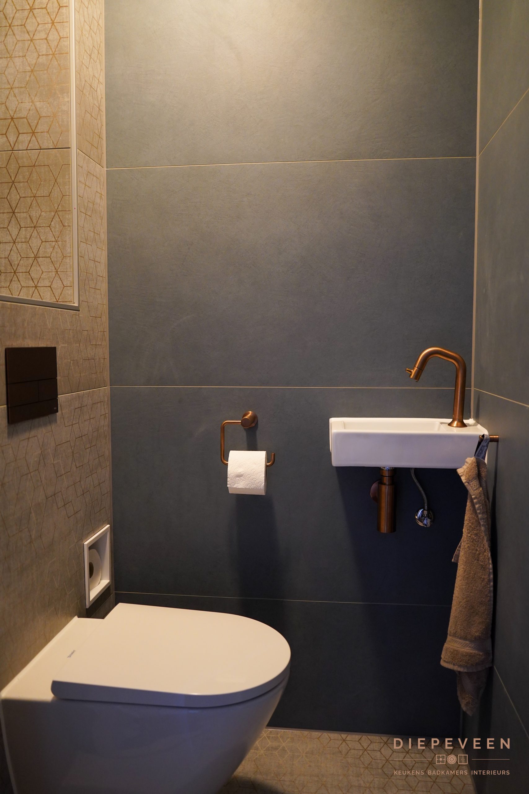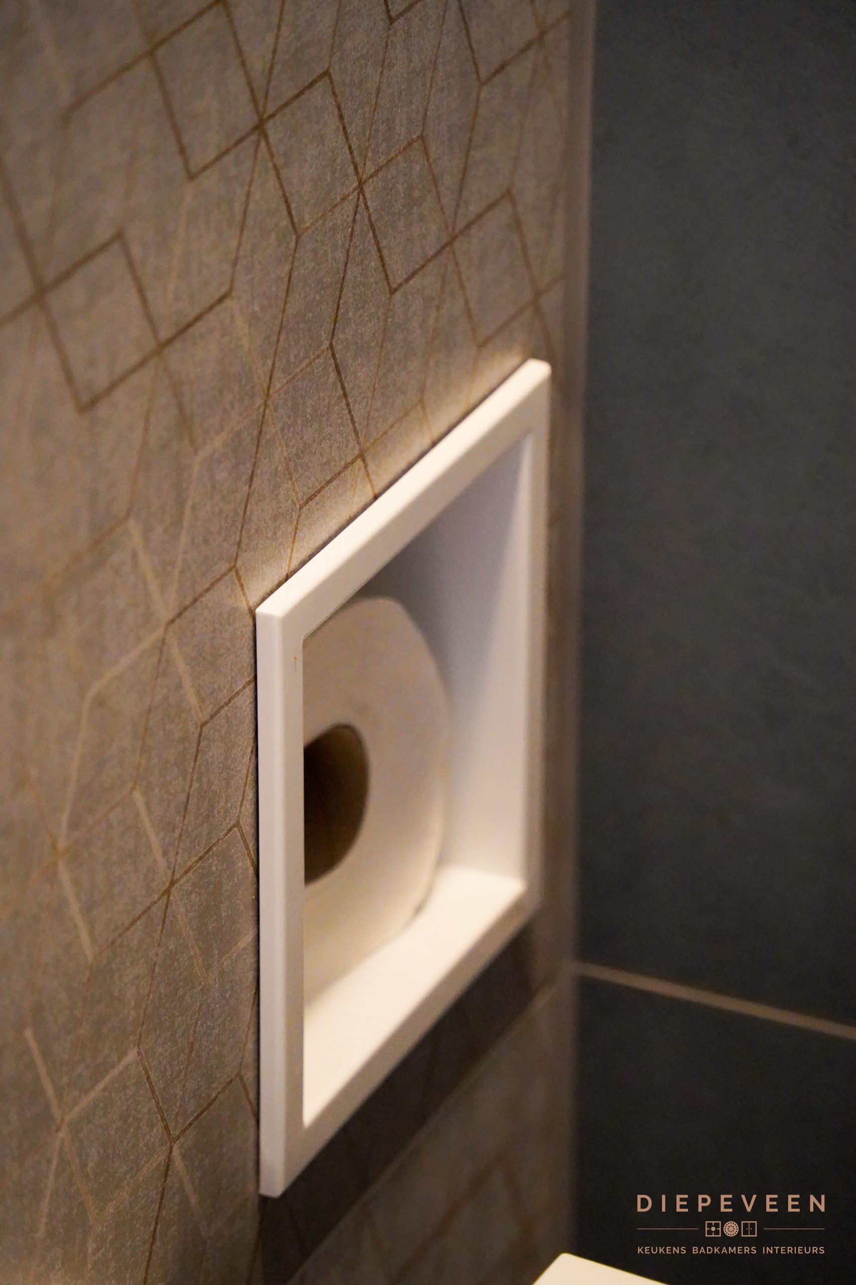 Ook het toilet hebben wij mogen verzorgen, met een ingebouwde nis voor de wc-rollen. Praktisch en mooi weggewerkt!