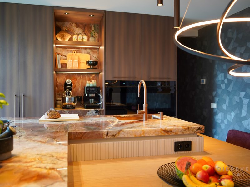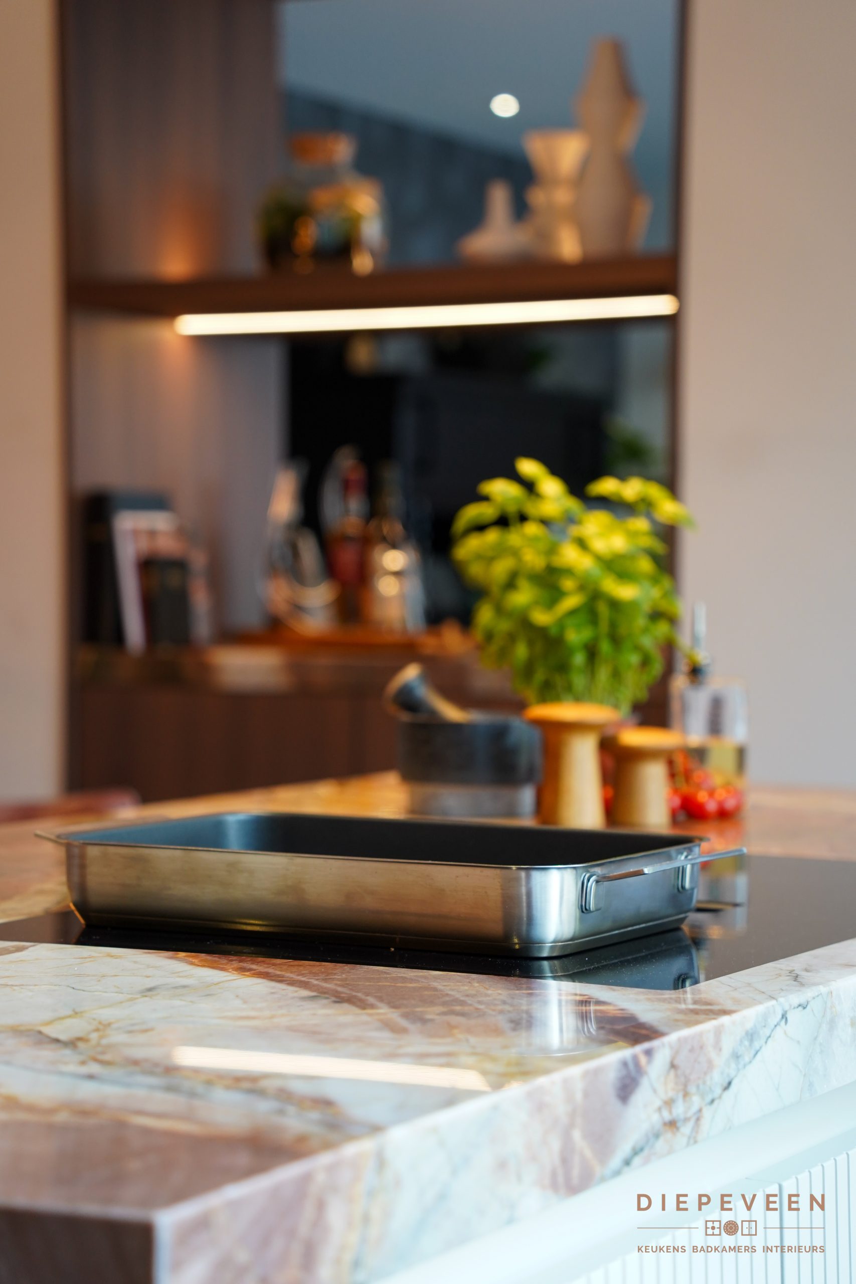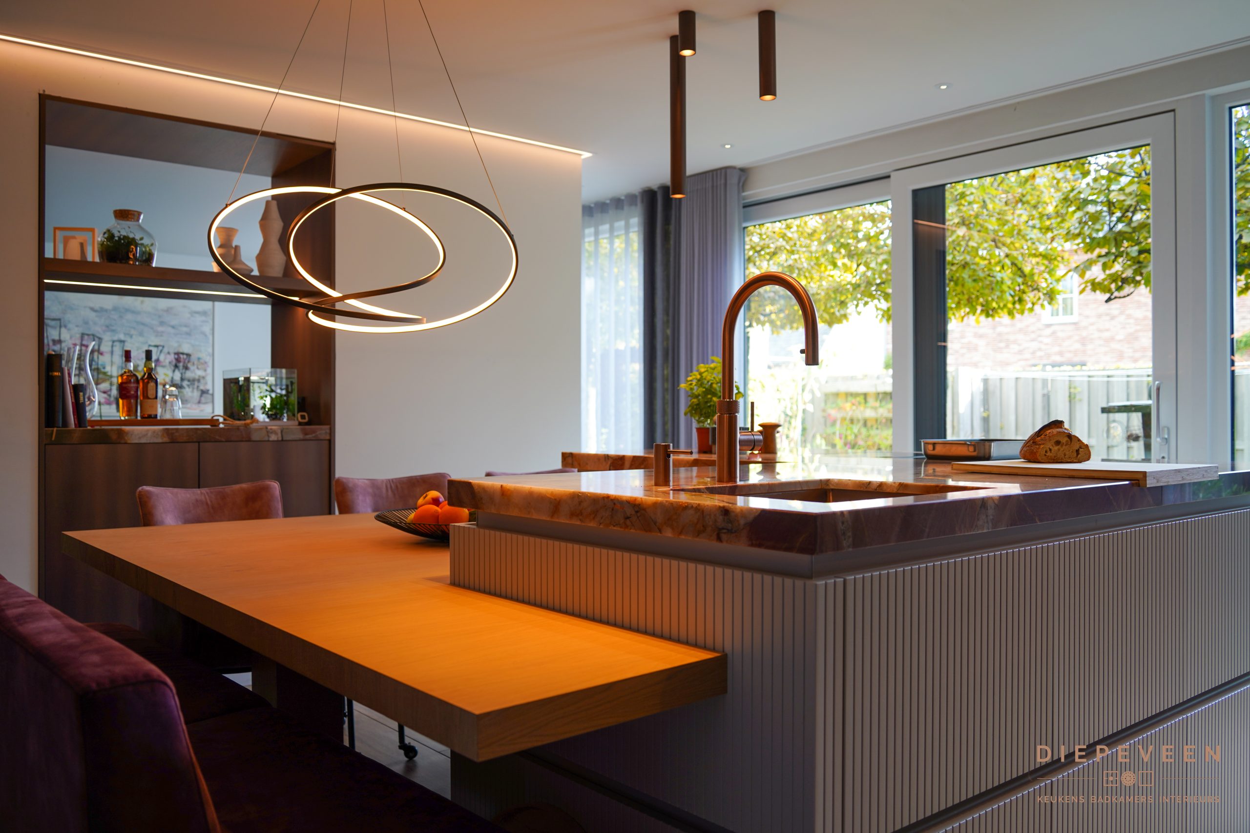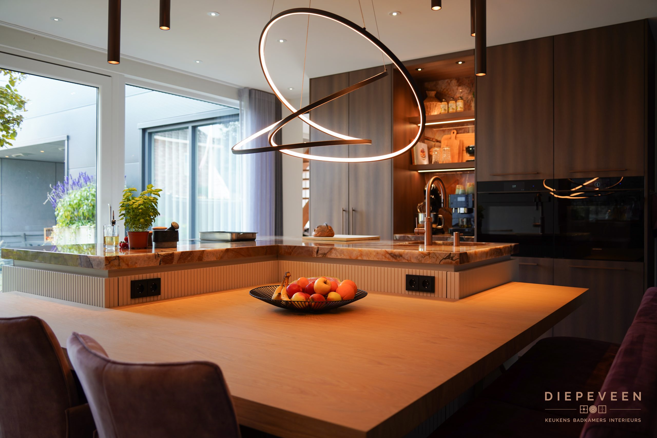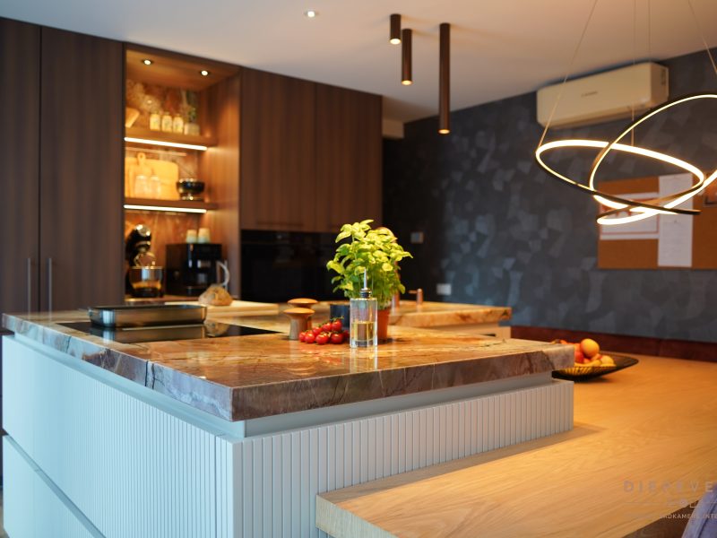 Deze prachtige leefkeuken kenmerkt zich echt door de hoogwaardige materialen, het is dan ook geen alledaagse keuken maar met recht valt hier te zeggen dat deze keuken net even anders is dan anders. En wat pakt dit dan enorm stijlvol uit. Het prachtige kwartsiet werkblad, is toch echt eyecatcher in deze ruimte. Prachtig glanzend en perfect gecombineerd met een licht front waardoor het echt tot zijn recht komt. En zie je die tafel aan het eiland? Iedereen kan hier zomaar aanschuiven, aan ruimte geen gebrek, te leuk en te gezellig! Jij aan het koken en de kids die lekker aan de tafel zitten te spelen. Heerlijk toch?! Een echte leefkeuken voor zowel kook als leefplezier, ultiem genieten.