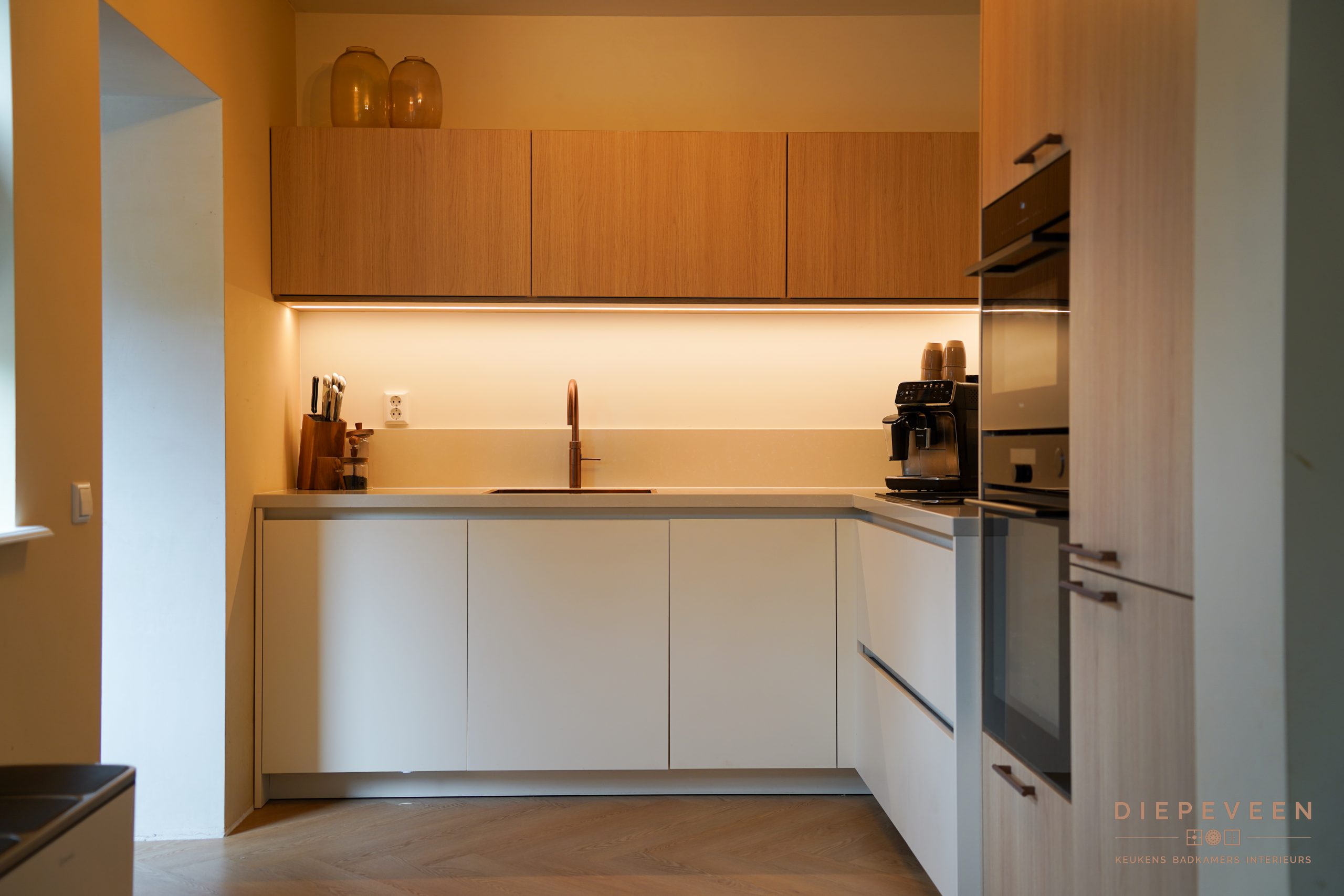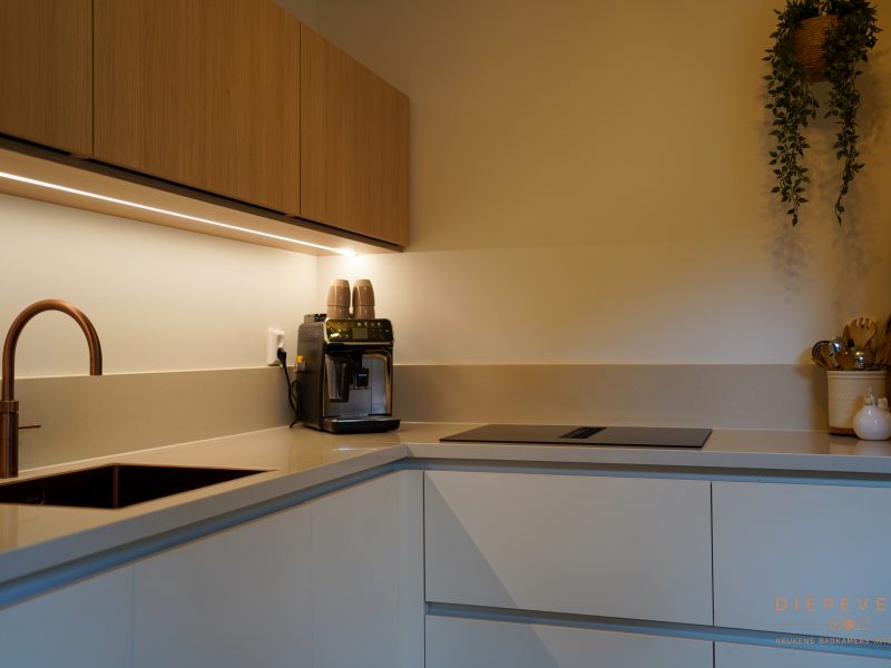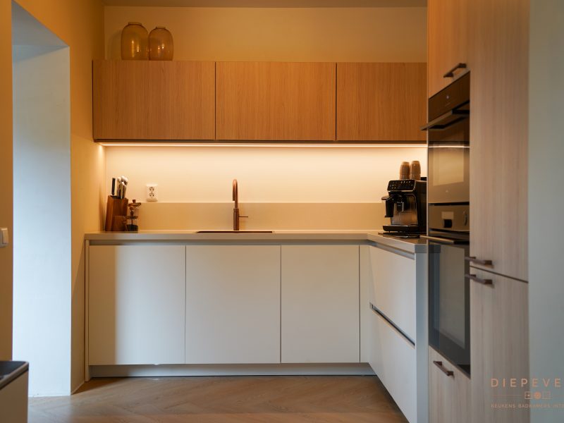 Deze keuken ademt sfeer vanaf het eerste moment! Door de hoekopstelling voelt het ruim en ontspannen aan. De warme houttinten en de verlichting geven nét dat vleugje luxe. Het is zo’n keuken waar je vanzelf langer blijft hangen. Wij houden hiervan!