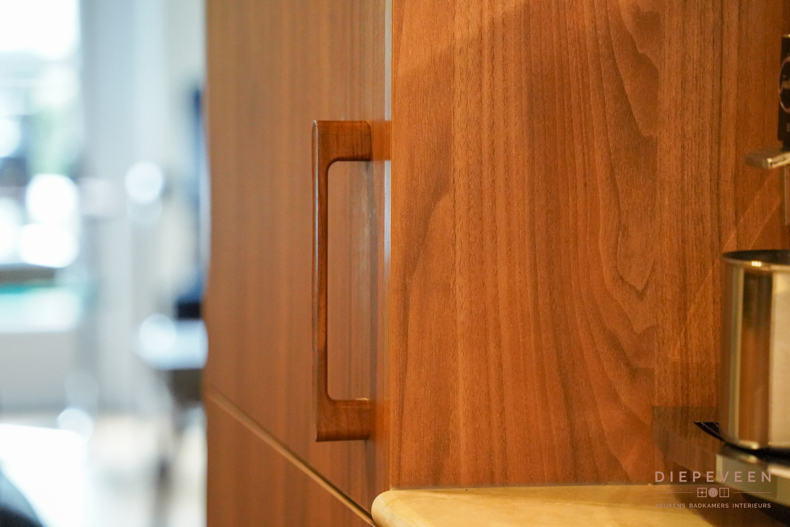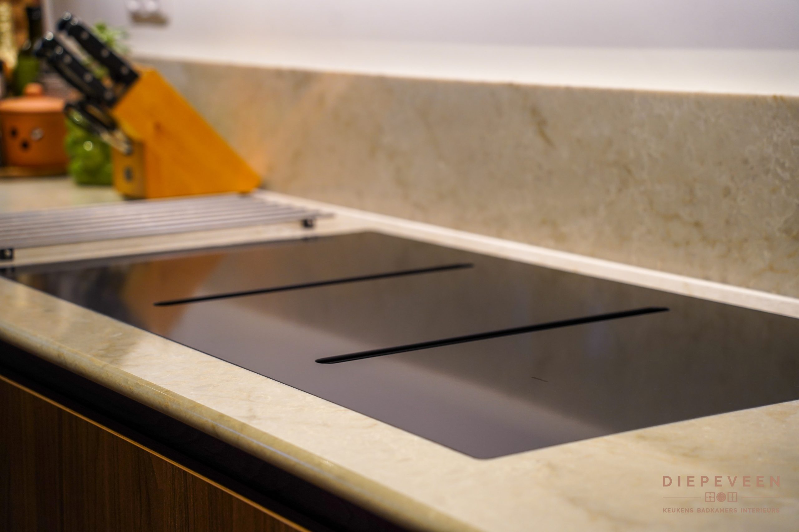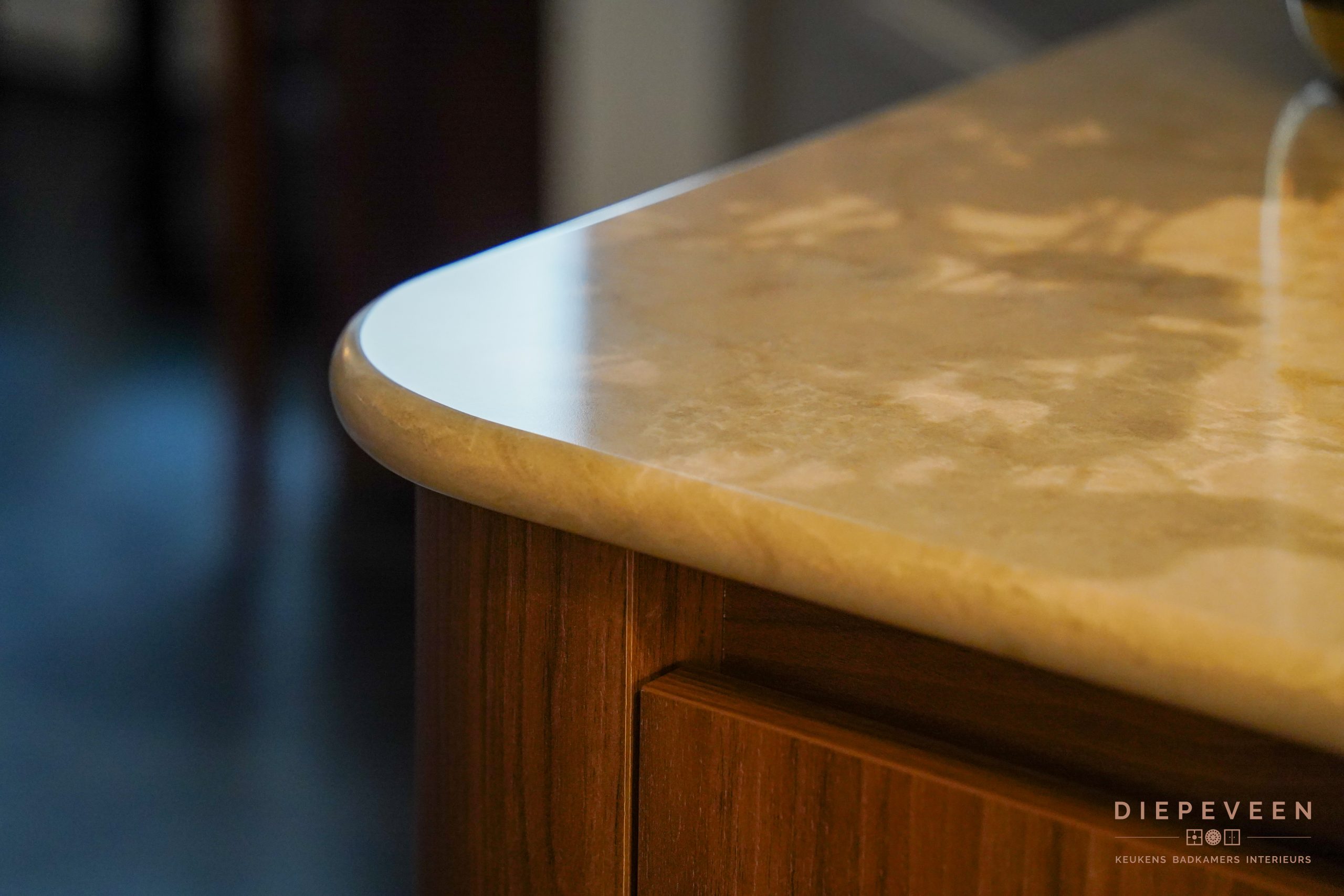 Een warme en sfeervolle keuken staat hier in Zaltbommel, prachtig uitgevoerd met ronde elementen. Helemaal in de trend van nu, de warme houten fronten ademen direct warmte en in combinatie met het prachtige werkblad matcht het perfect in deze stijl. Een populair werkblad, en dat snappen wij wel, het composieten blad in de kleur Glencoe is een lust voor het oog! Puur genieten. En oh ja, dit moeten we nog even zeggen: kijk ook naar de prachtige Opera kookplaat met afzuiging. Wij zijn fan, binnenkort namelijk in onze showroom te bewonderen!