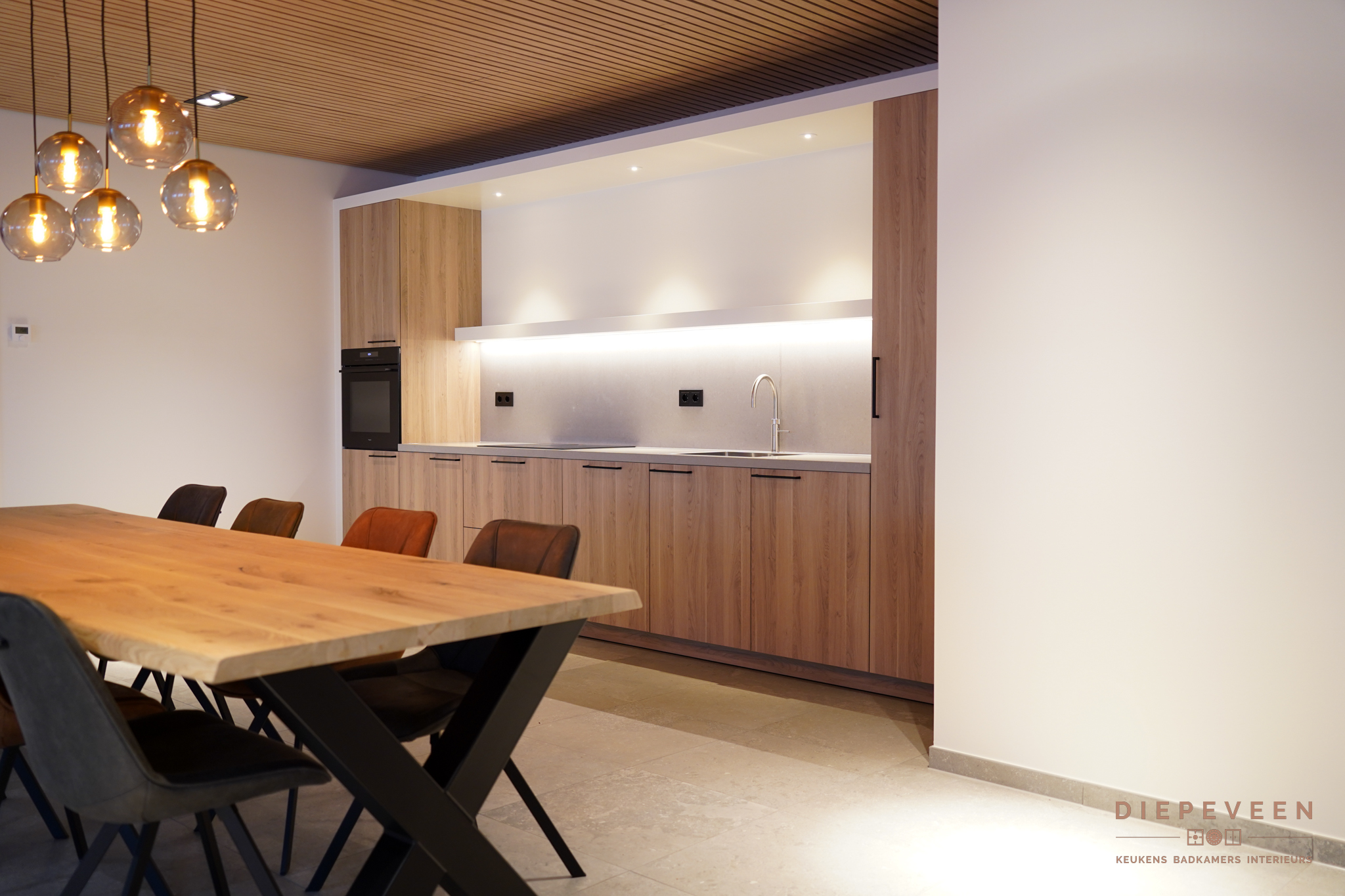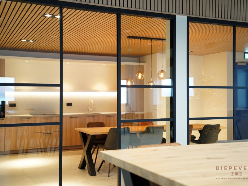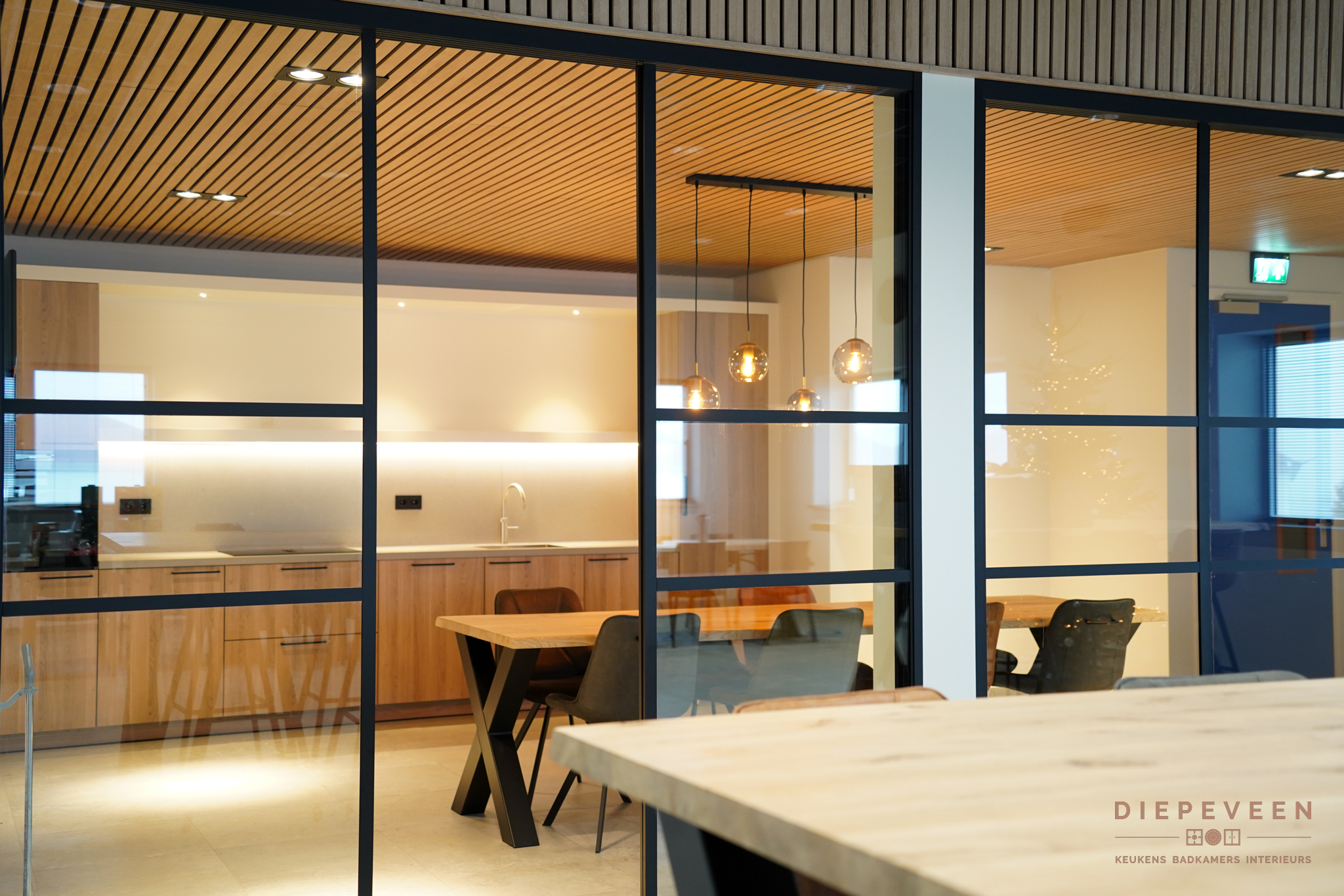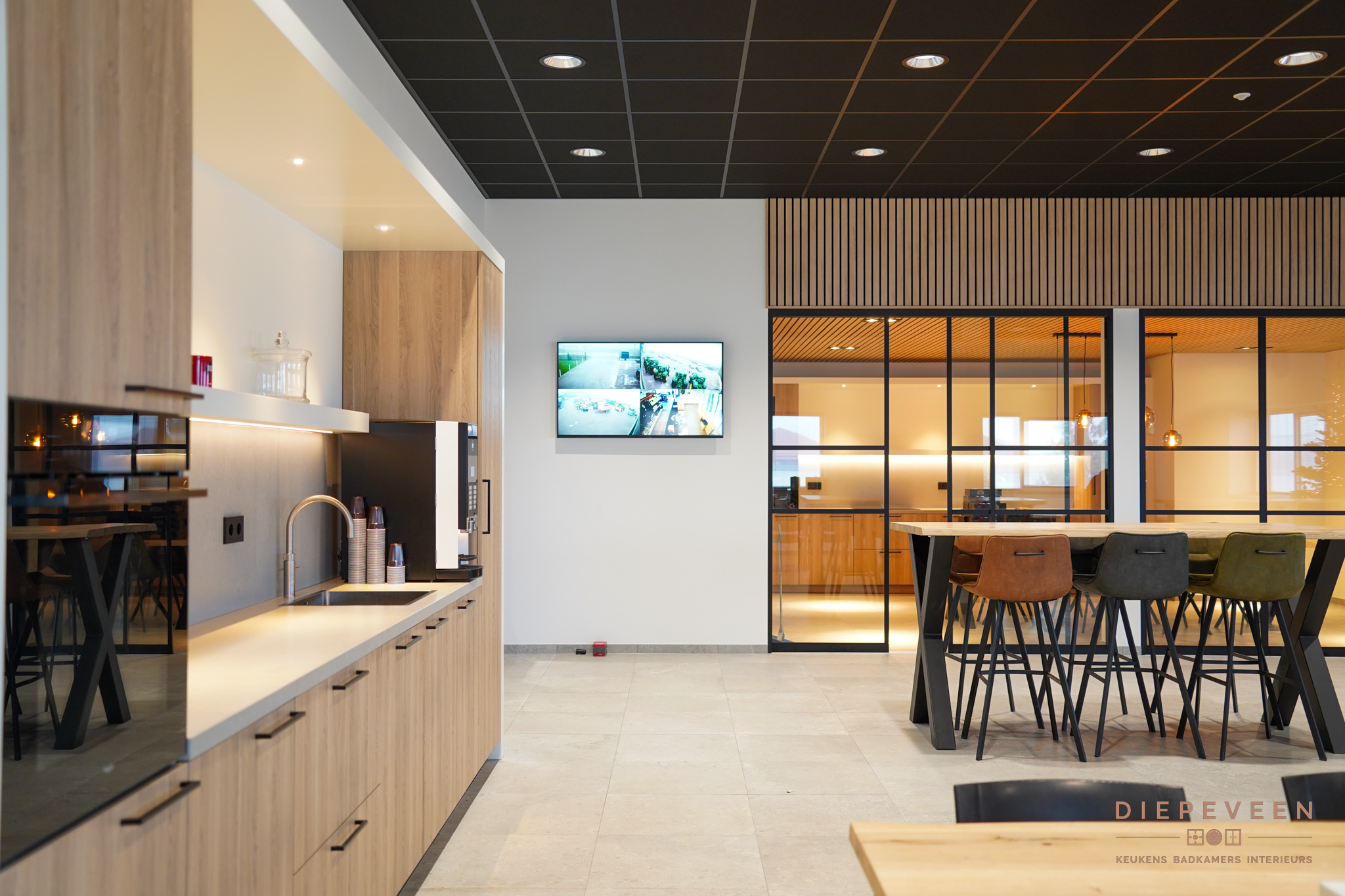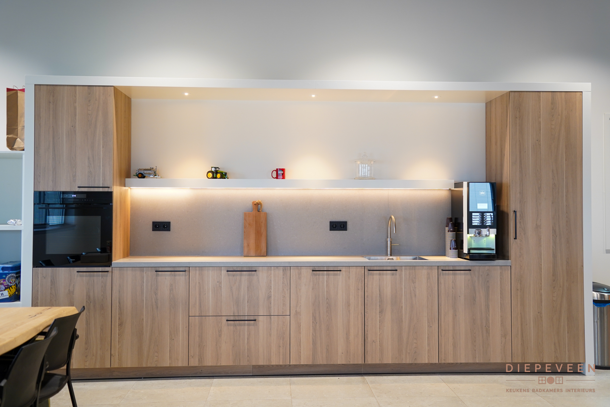 In Bruchem hebben wij onlangs 2 prachtige bedrijfkeukens mogen realiseren. Tijdloos, warm en helemaal van deze tijd! De houtlook in combinatie met strakke lijnen en zwarte accenten zorgt voor een rustige en fijne uitstraling. Uiteraard zijn de keukens van alle gemakken voorzien, met volop werkruimte en genoeg opbergruimte. De wandplank met geïntegreerde LED-strip is een echte eyecatcher. Deze geeft mooi, sfeervol licht én zorgt voor prettig werklicht op het blad. Een fijne plek in het bedrijf waar collega’s graag samenkomen.