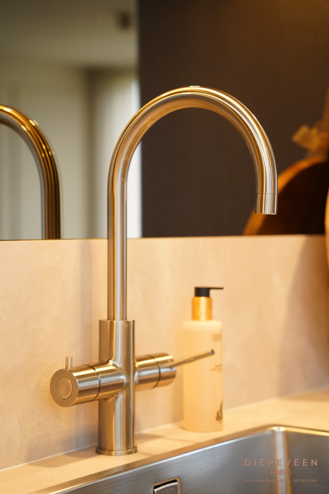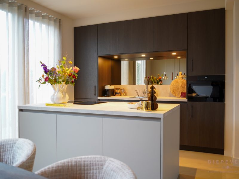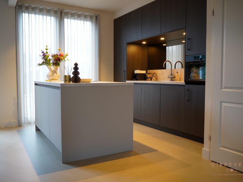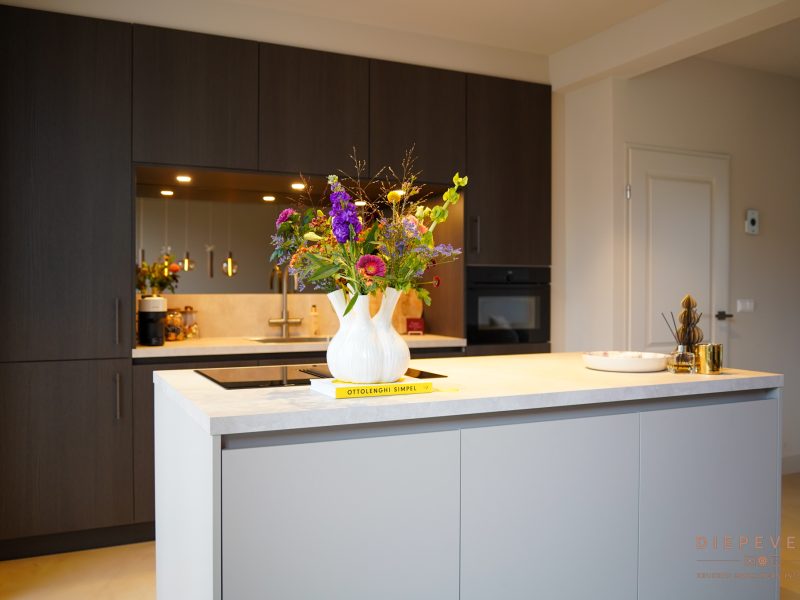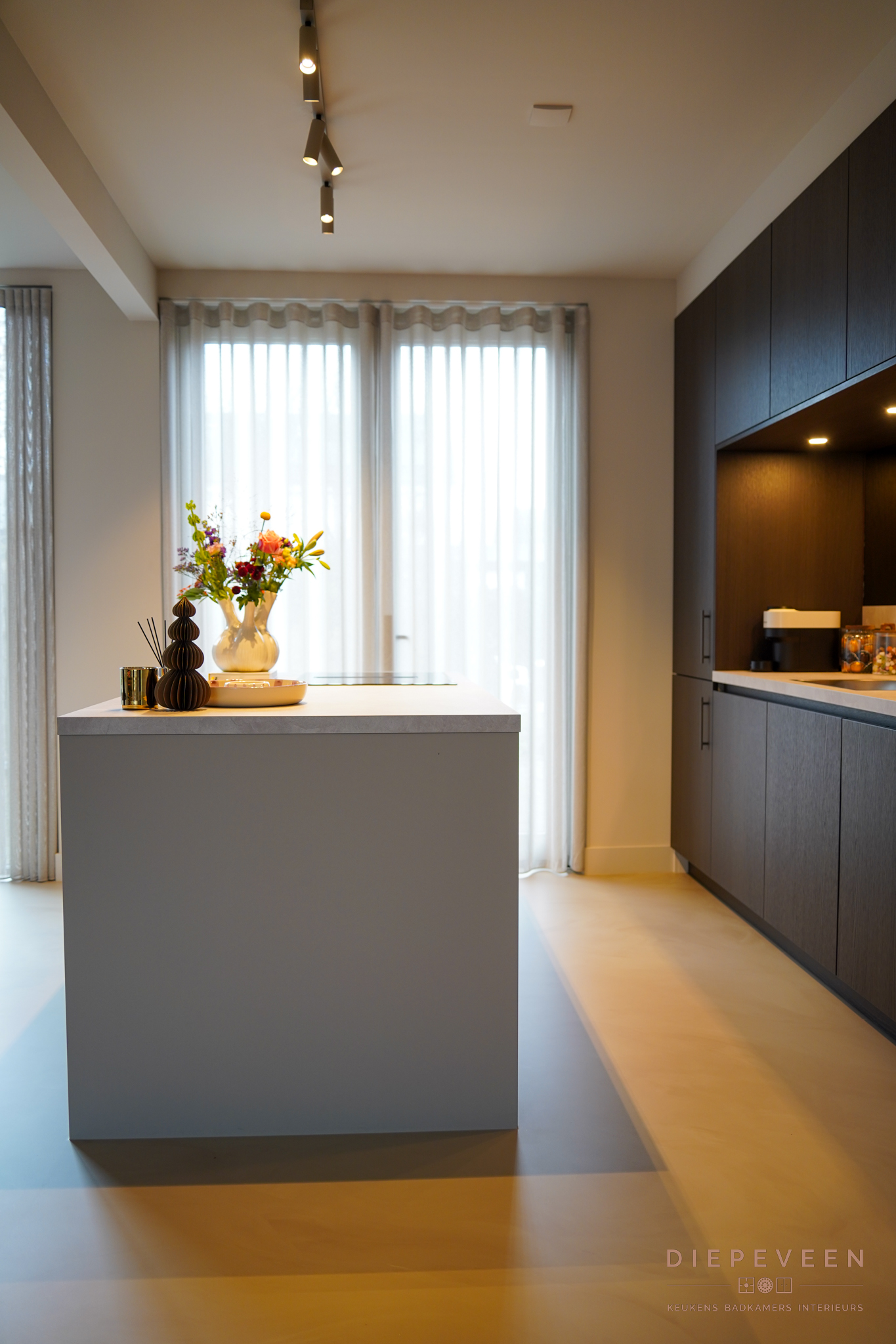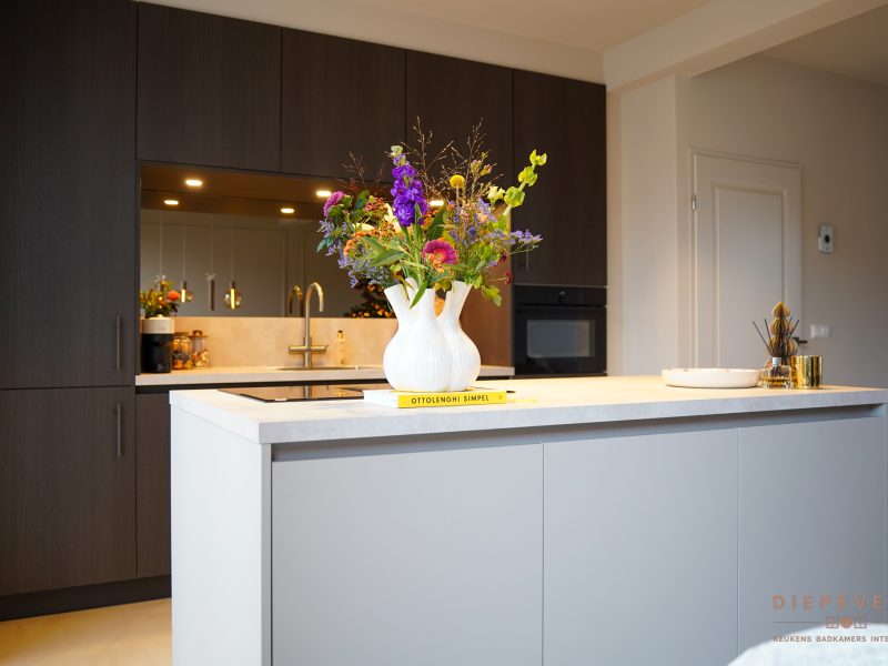 Wat een heerlijk aanzicht deze keuken, een keuken die van alle gemakken is voorzien! Een ruime en strakke kastenwand die met prachtig maatwerk is afgewerkt en die mooi doorloopt bovenin. En het lichte eiland past toch perfect erbij?! Lekker fris, elegant en stijlvol. De kookplaat met afzuiging en de oven zorgen voor heerlijk kookgemak. Bedankt voor het vertrouwen in Diepeveen, een mooie opdracht met een droomkeuken als eindresultaat!