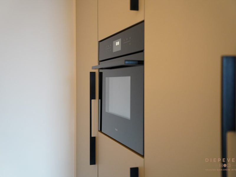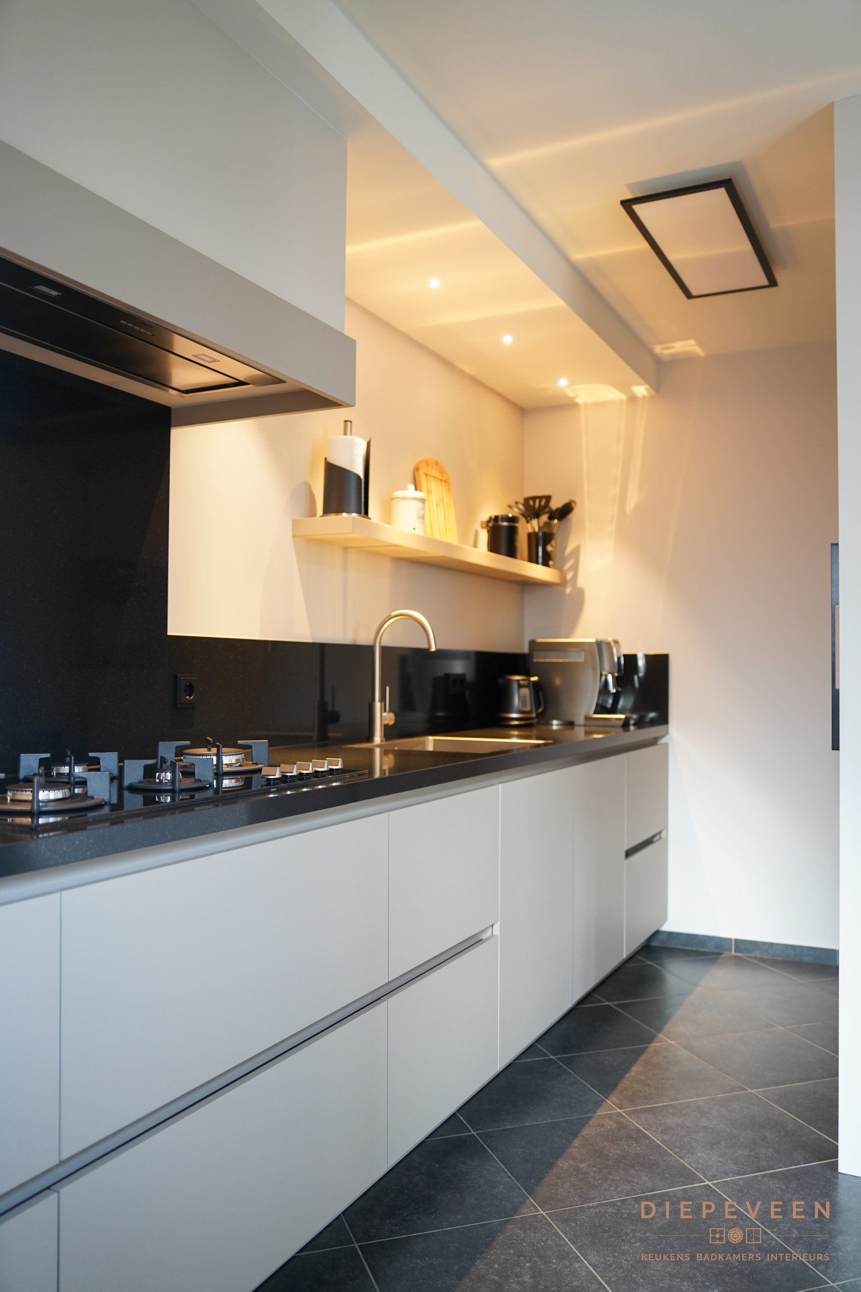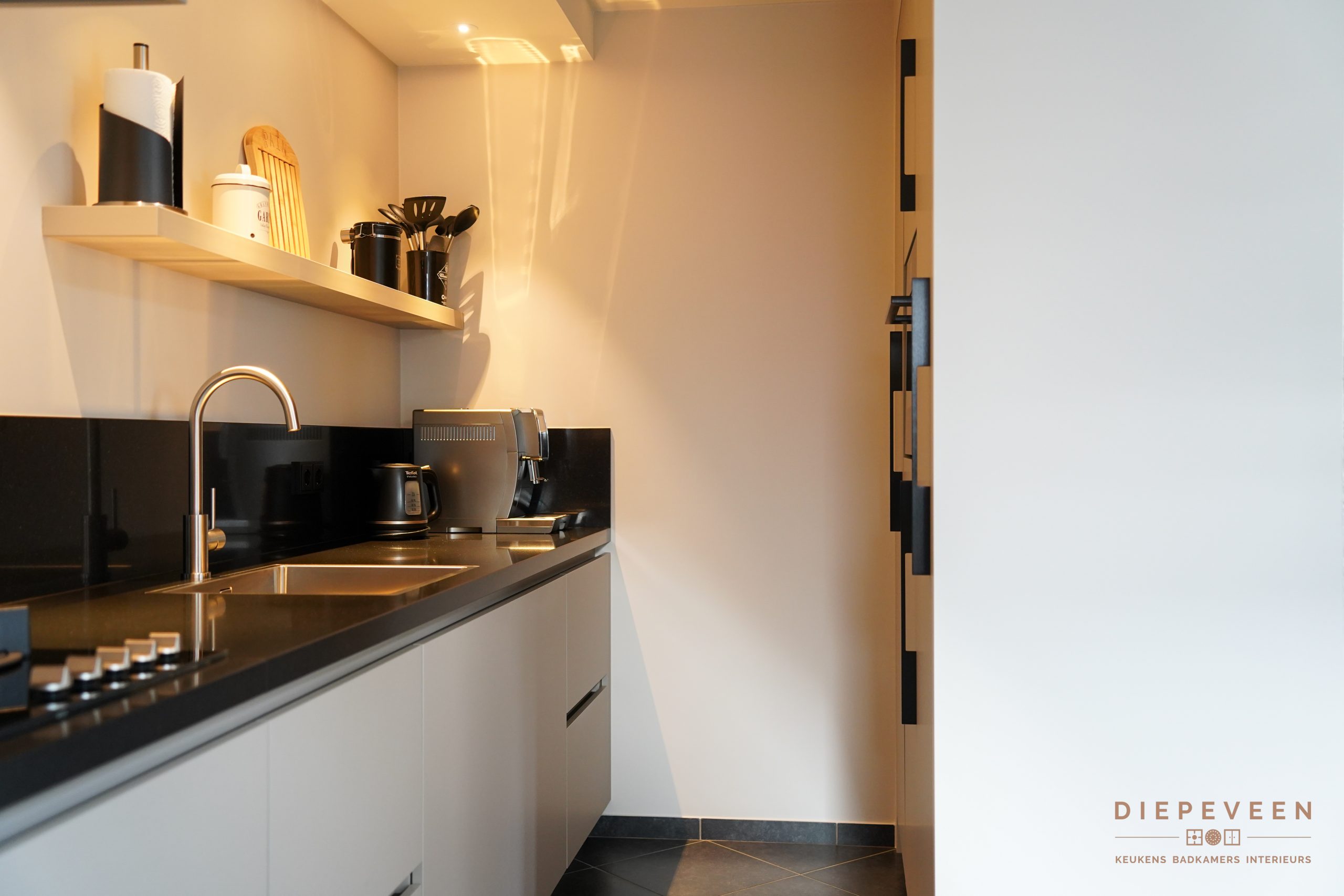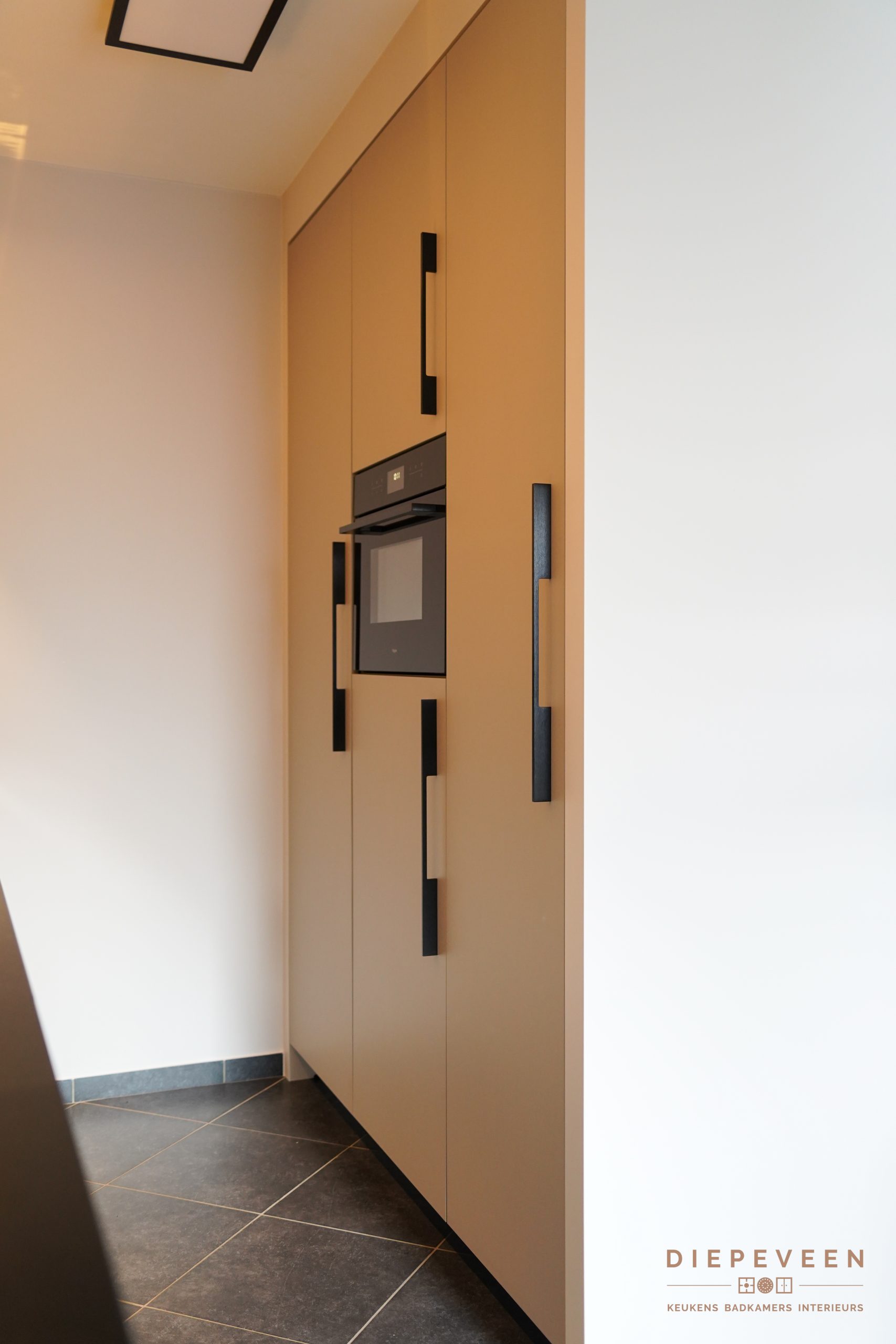 Rust, warmte en een strak ontwerp komen hier perfect samen. De zachte tinten, zwarte details en mooie verlichting maken deze keuken tot een plek waar je meteen wilt zijn.