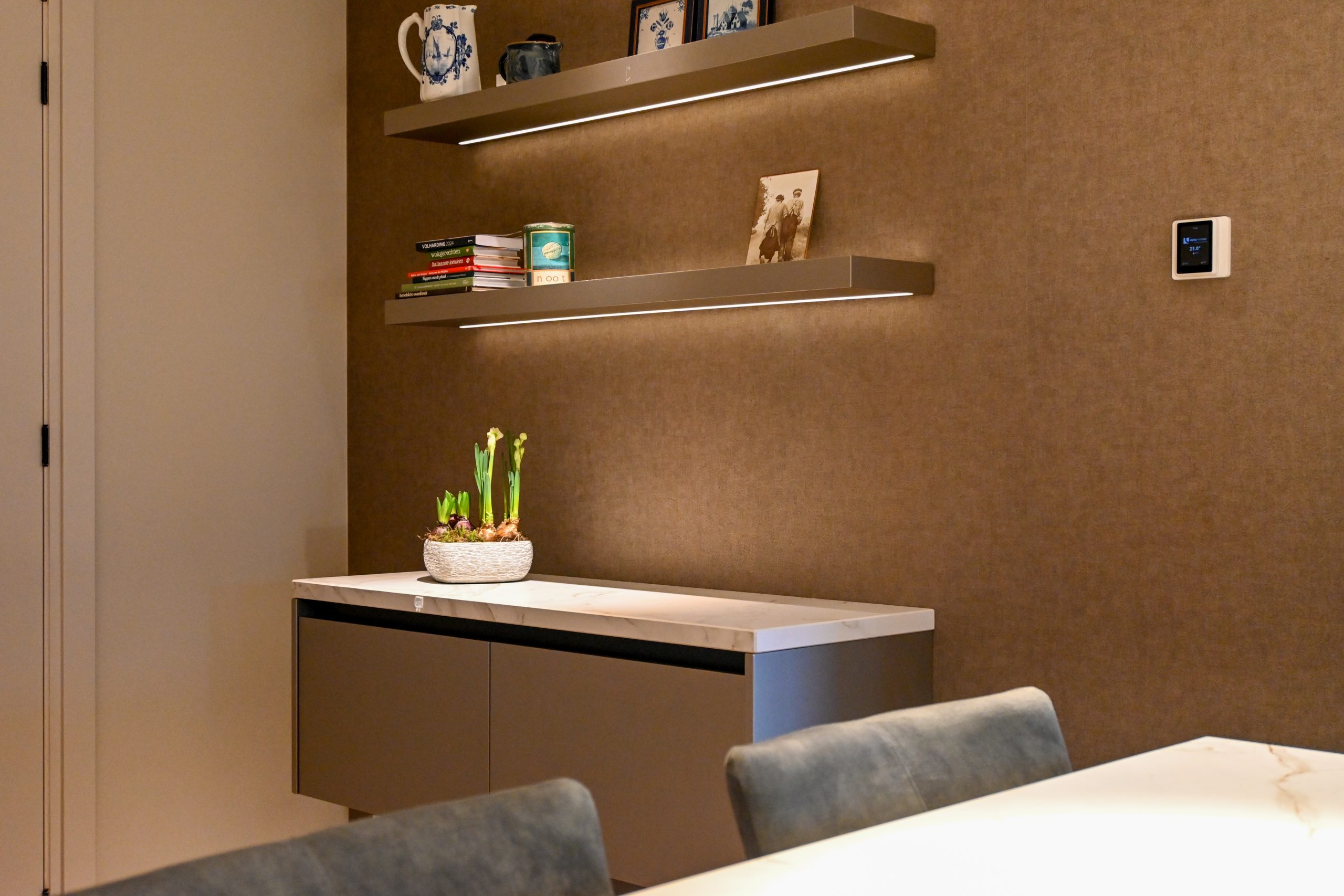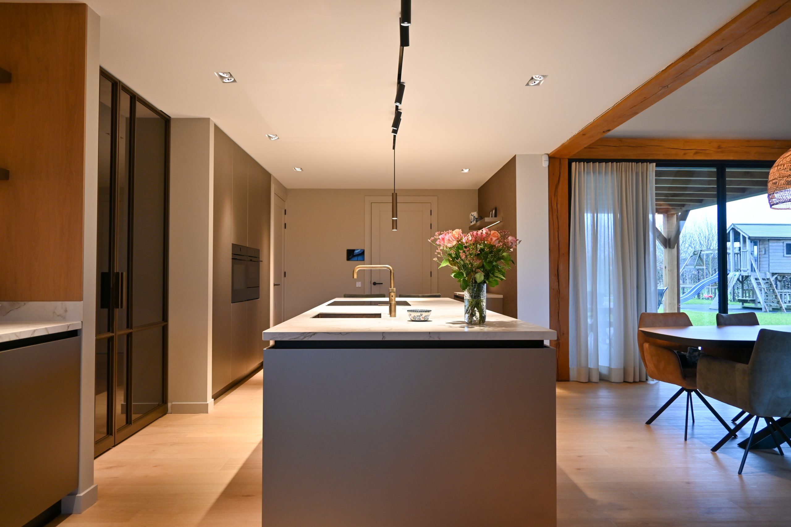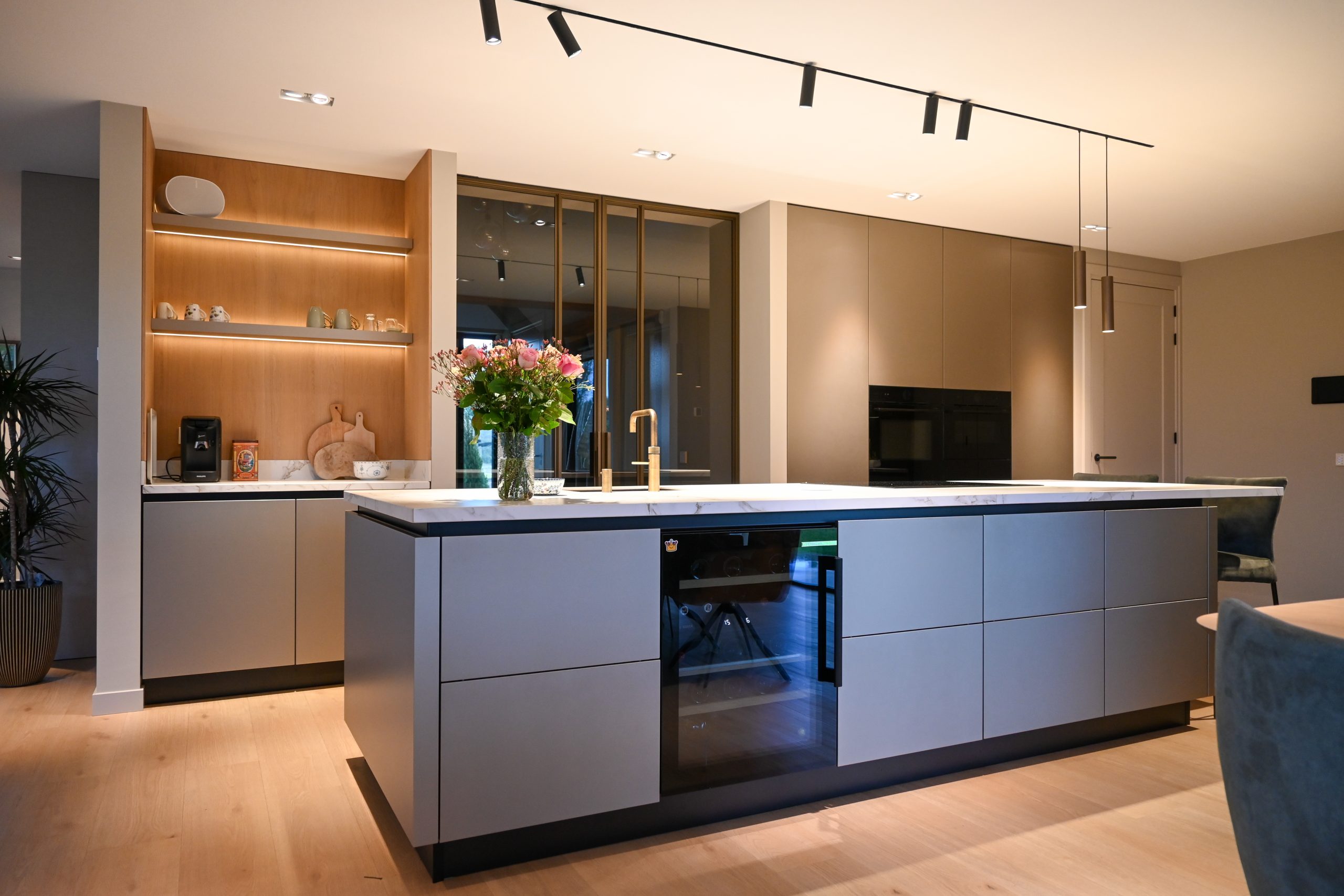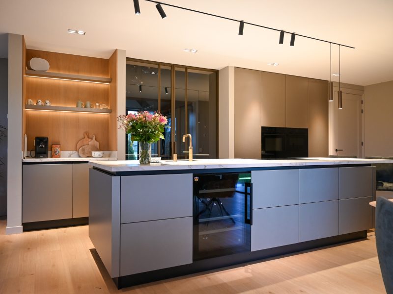 Sommige keukens voelen meteen als het hart van een huis. Dit is zo’n keuken. Niet alleen een plek om te koken, maar een ruimte om samen te komen, verhalen te delen en de dag te beginnen met een kop koffie aan de bar. Een Scandinavische uitstraling, lichte materialen en een vleugje luxe – precies wat de bewoners zochten.